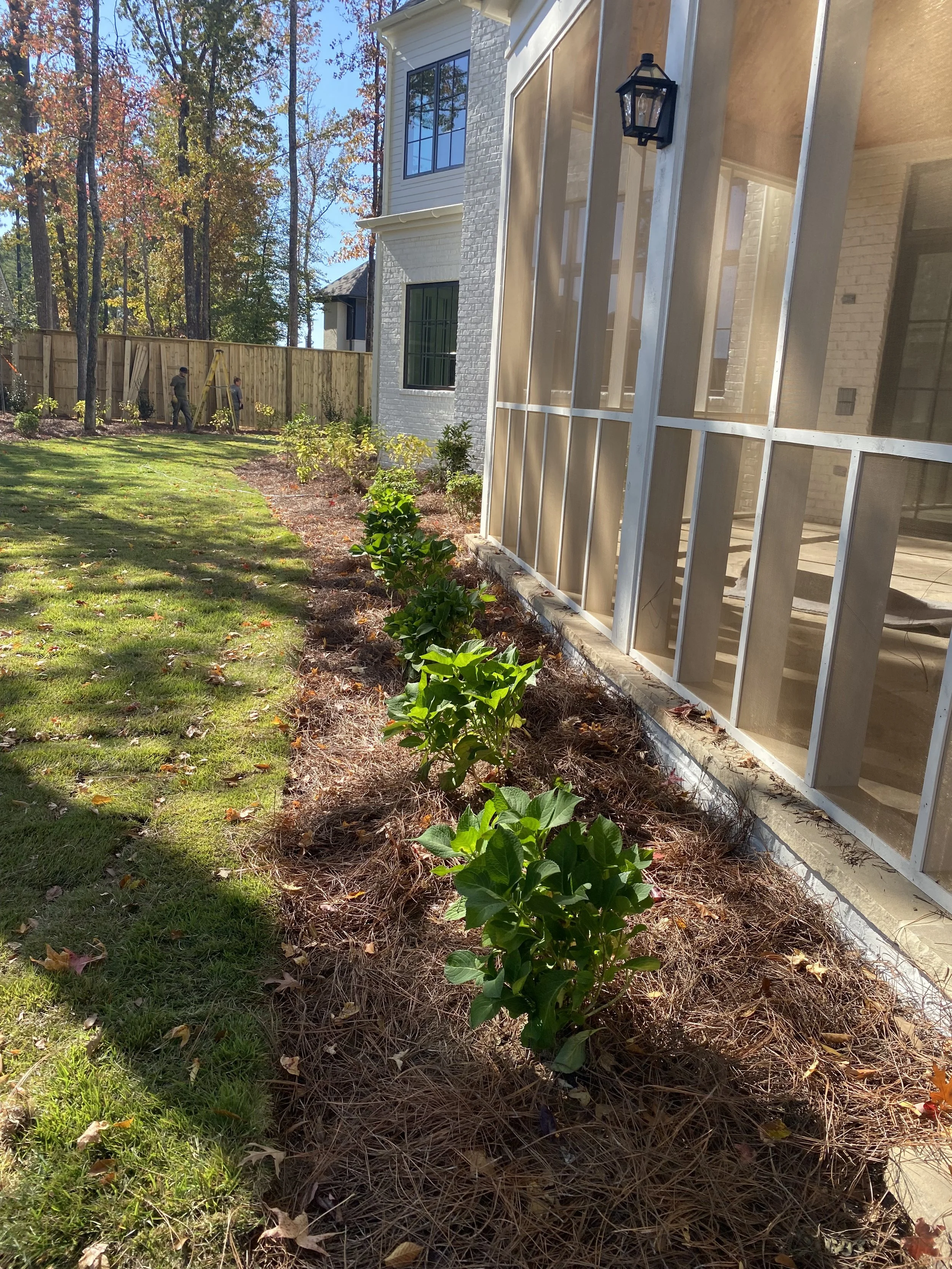 Beds along the screened in porch will be framed by radiant French hydrangeas, a favorite of Mrs. Posey!